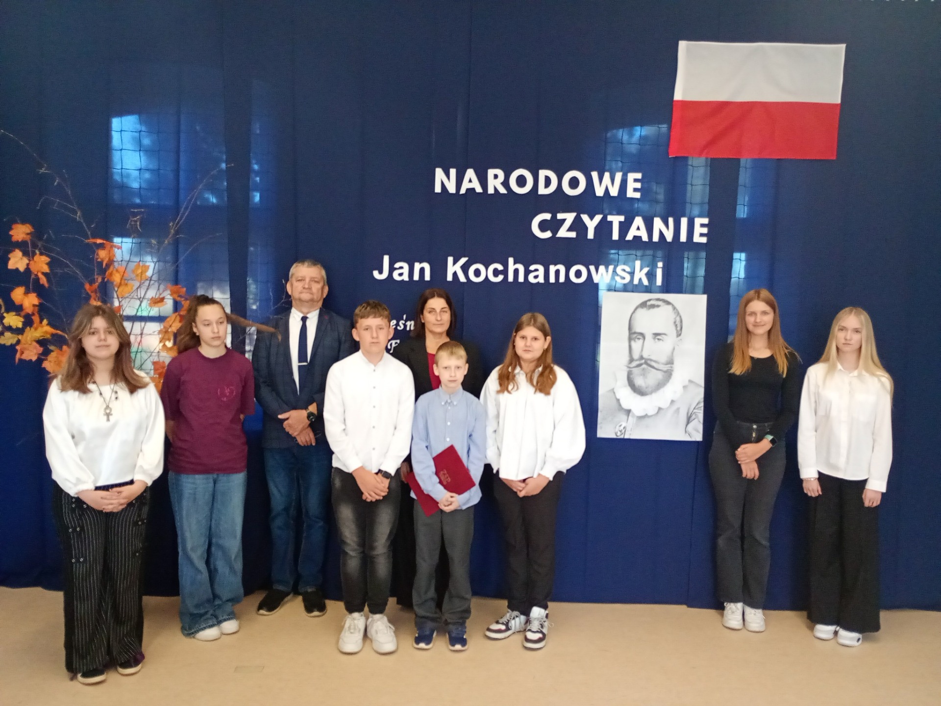 Dnia 24 września w naszej szkole wspólnie z filią biblioteczną odbyła się kolejna edycja ogólnopolskiej akcji Narodowe Czytanie, organizowanej pod patronatem Prezydenta Rzeczypospolitej Polskiej. Tegoroczne wydarzenie było poświęcone twórczości Jana Kochanowskiego, jednego z najwybitniejszych poetów polskiej literatury. Odczytano wybrane utwory poety. Na zakończenie Pan Dyrektor podkreślił znaczenie czytelnictwa w kształtowaniu wrażliwości, wyobraźni oraz tożsamości kulturowej młodego pokolenia. Była to nie tylko lekcja literatury, ale także okazja do wspólnej refleksji nad pięknem języka polskiego i ponadczasowym przesłaniem poezji Jana Kochanowskiego.