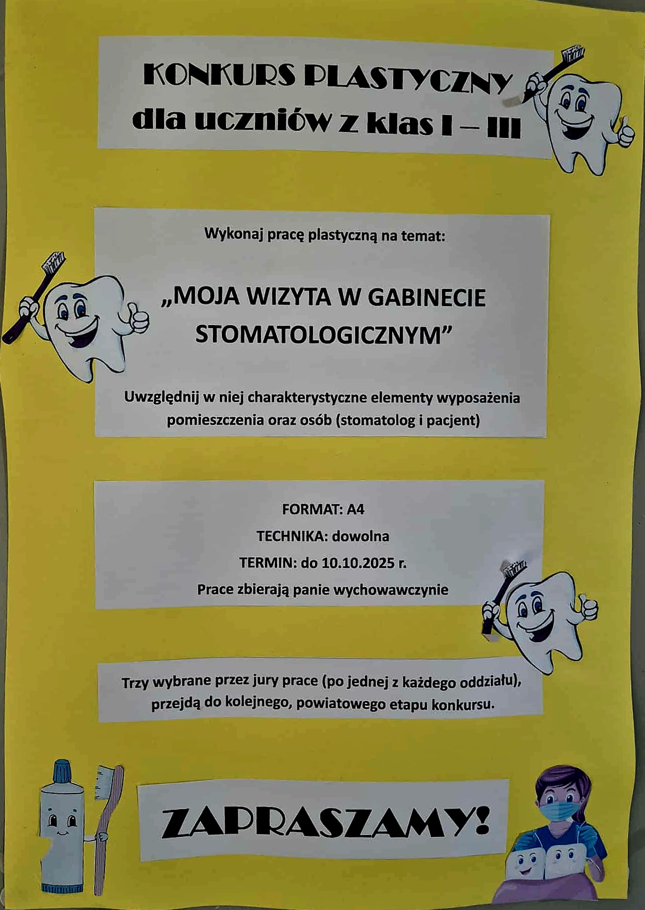 Konkurs plastyczny dla uczniów klas I-III "Moja wizyta w gabinecie stomatologicznym"