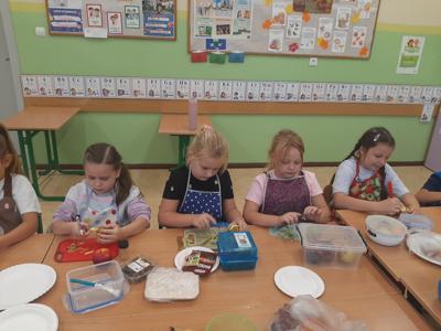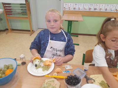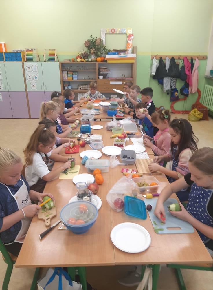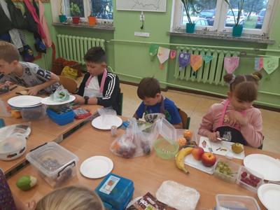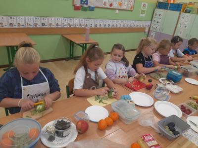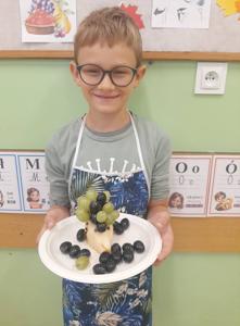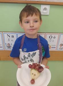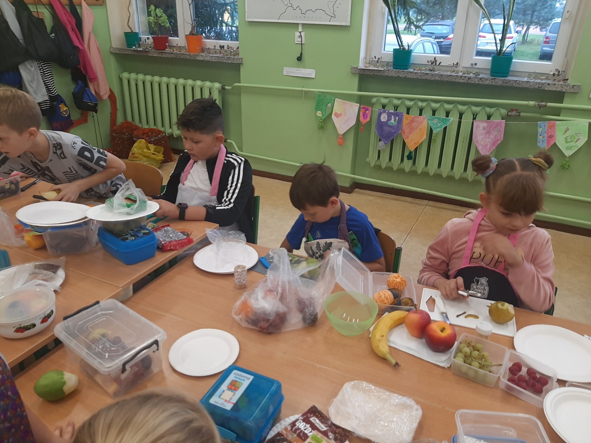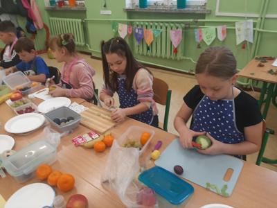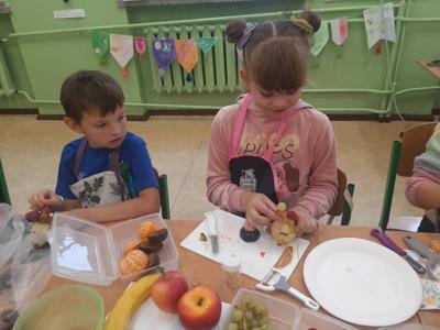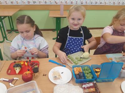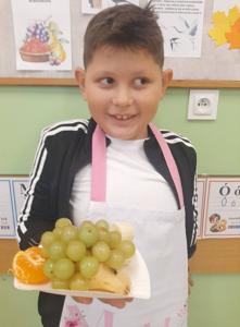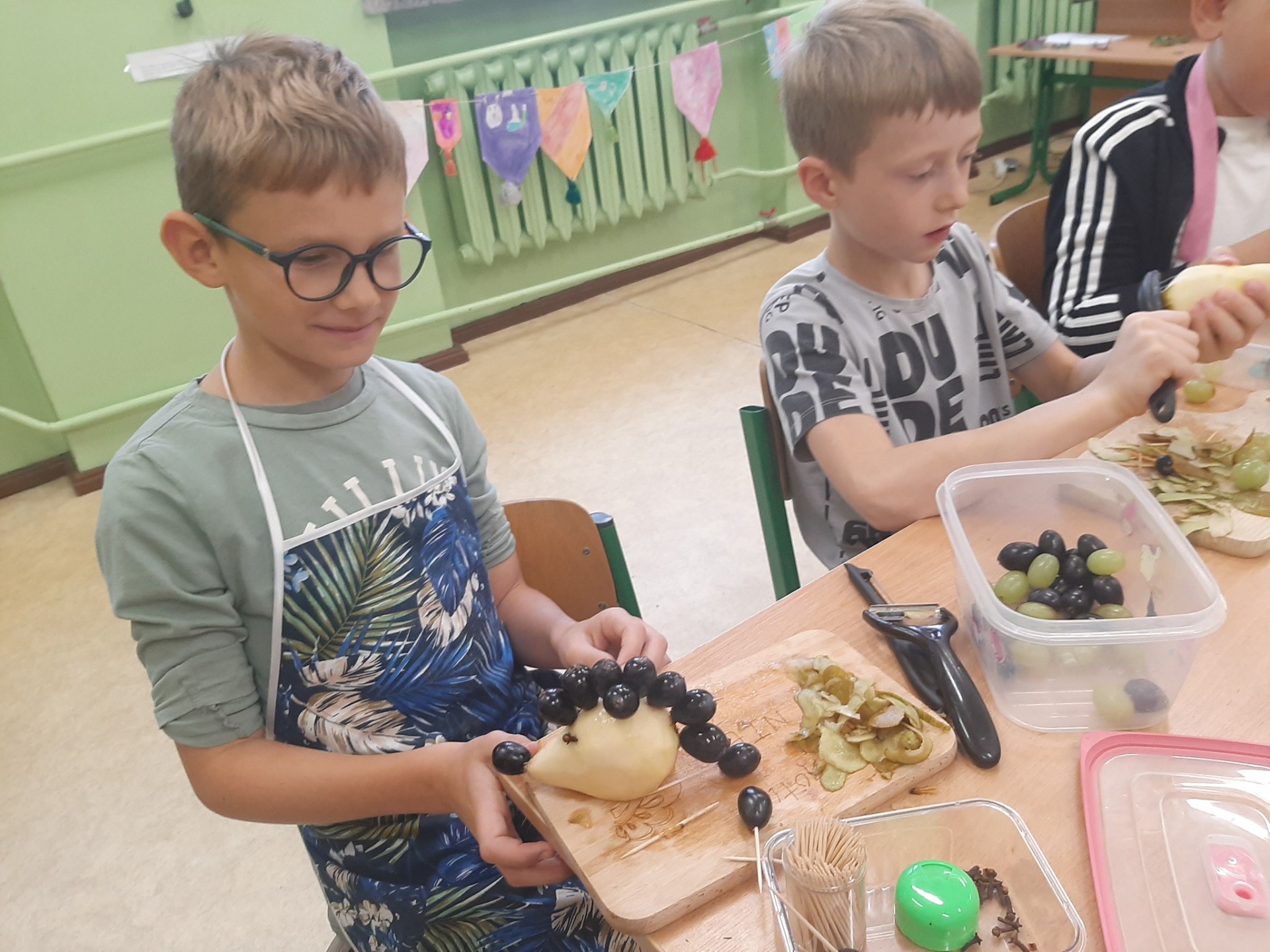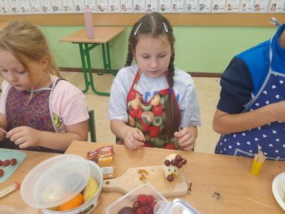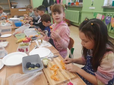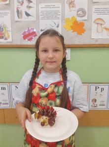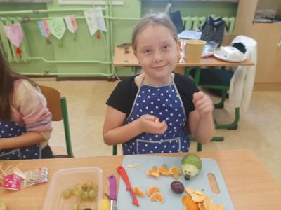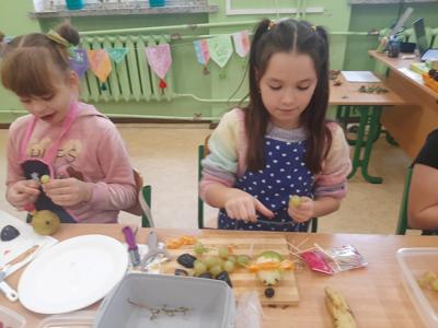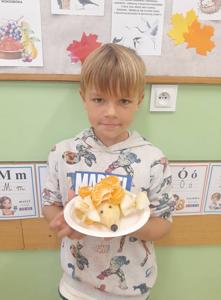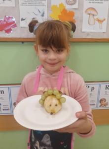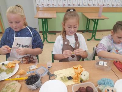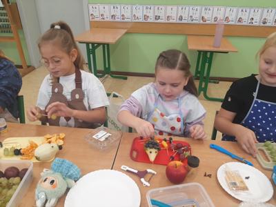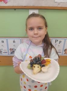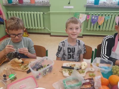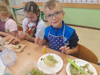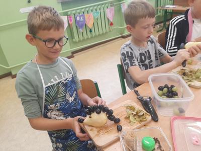 Już niedługo Dzień Owoców i Warzyw. Uczniowie klasy drugiej przygotowali smaczne i zdrowe przekąski. Samodzielnie zaplanowali etapy pracy. Tak powstały owocowe jeże.