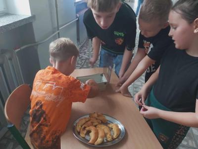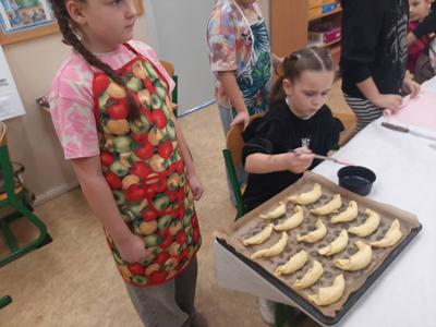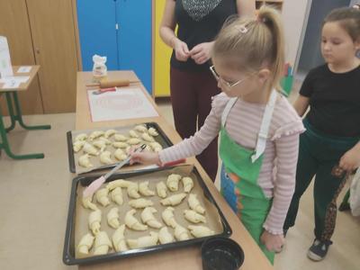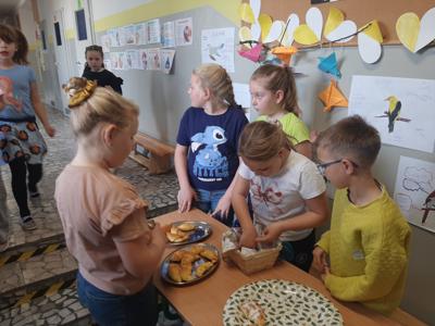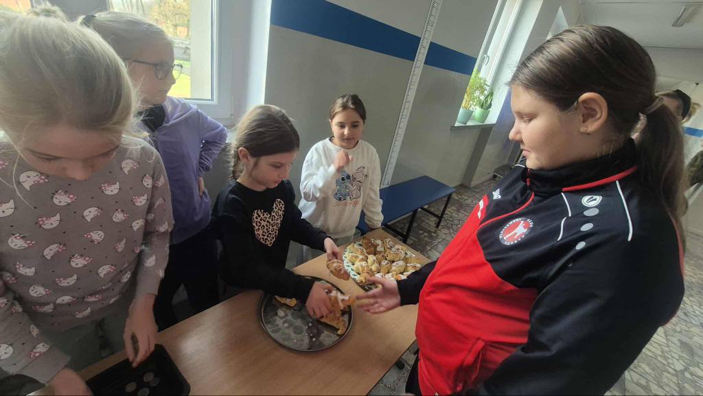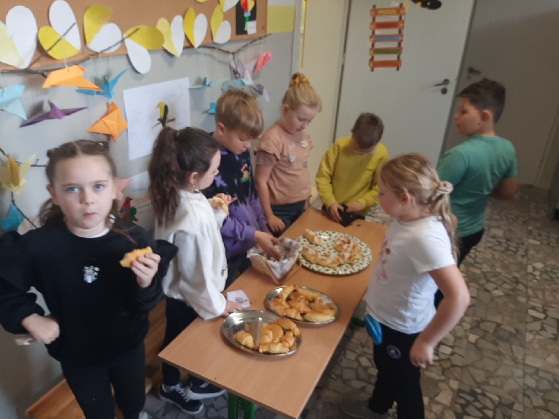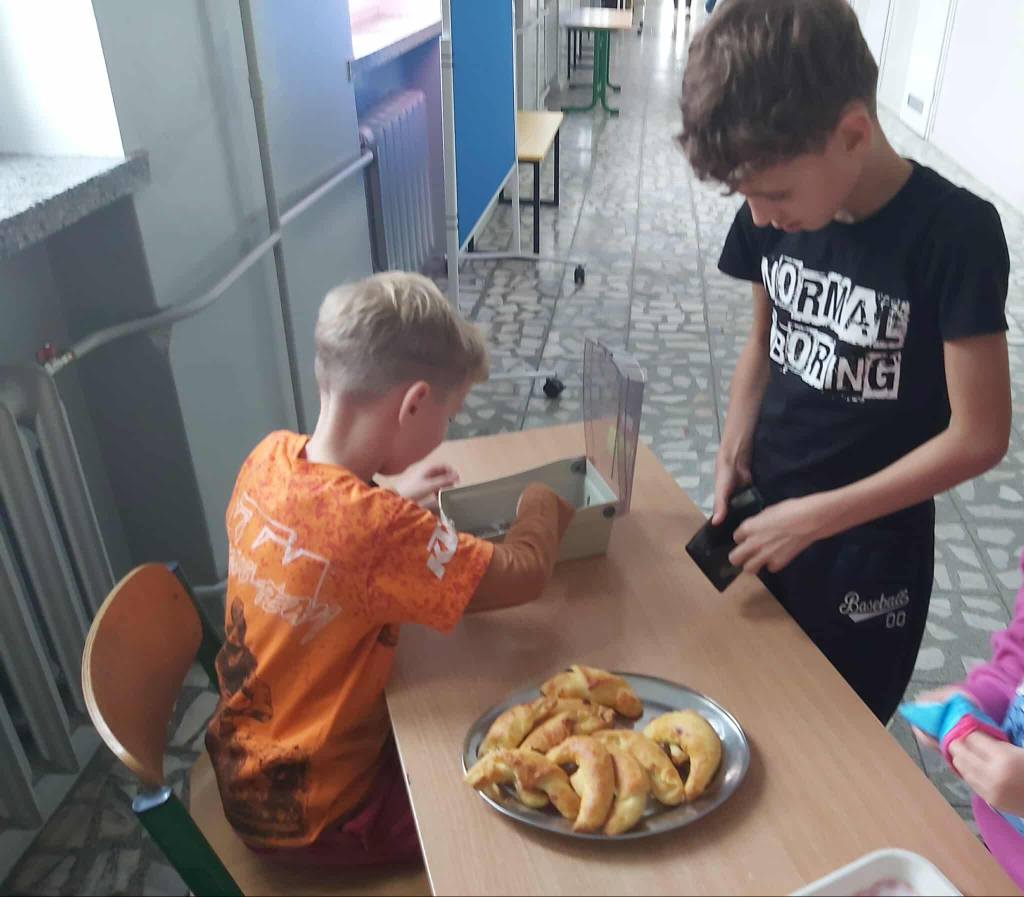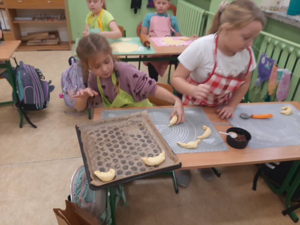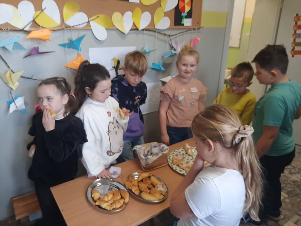 Klasy: 1, 2 i 3 miały okazję jako pierwsze wziąć udział w cyklicznej akcji, której pomysłodawcą jest Rada Rodziców. Uczniowie wraz z mammami Amelki, Szymona, Leny, Zuzi, Mikołaja i Gabrysi przygotowali sporą ilość rogalików, które później zostały sprzedane w szkole. Dzieci ćwiczyły nie tylko umiejętności kulinarne, ale również komunikacyjne oraz sprawczość, samodzielność podczas robionych przez starszych i młodszych kolegów zakupów. Radzie gratulujemy pomysłu a uczniom realizacji. Dziękujemy wszystkim zaangażowanym za pomoc przy tym przedsięwzięciu. Rogale były pyszne. Czekamy na kolejną akcję!