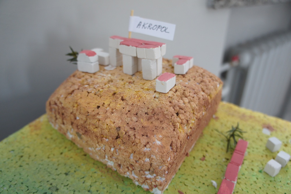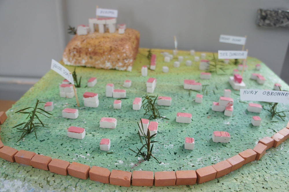 Dawid Sopniewski, Jan Wasik i Szymon Krupa - być może przyszli architekci prezentują przygotowane makiety